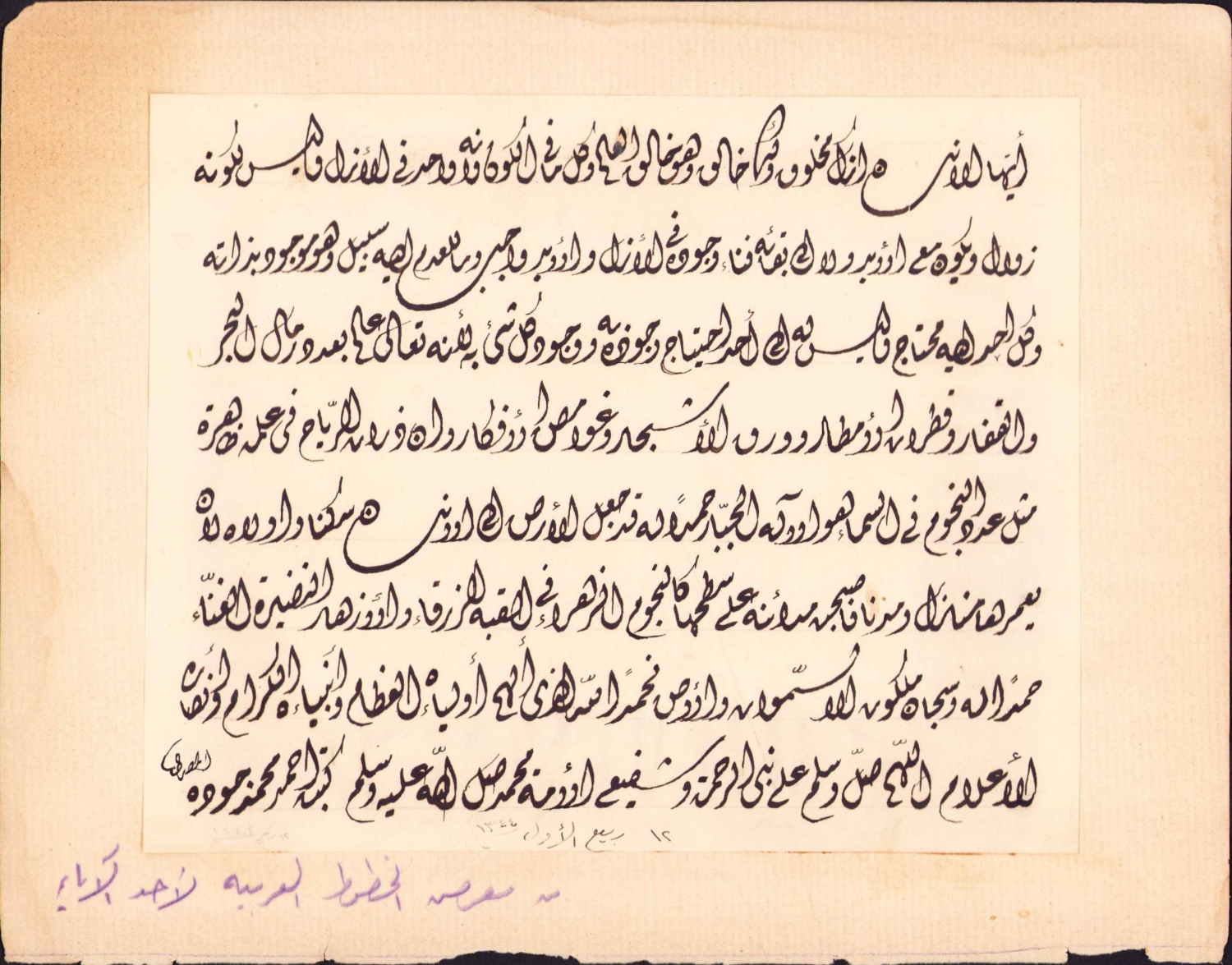 Divani Arapça hat yazı, Ahmet Muhammed Cevdet el Mısri ketebeli, 1344 tarihli, 17,5x14 cm.