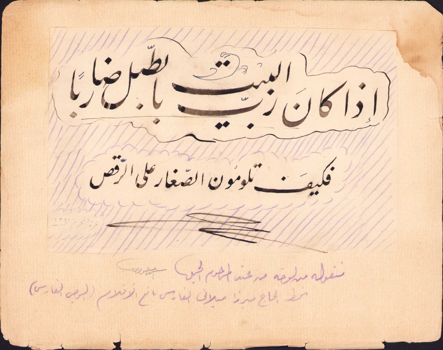 Talik Hat yazı, Kurşun kalemle Muhammed Cevdet Ketebeli, 1340, 23x18 cm.