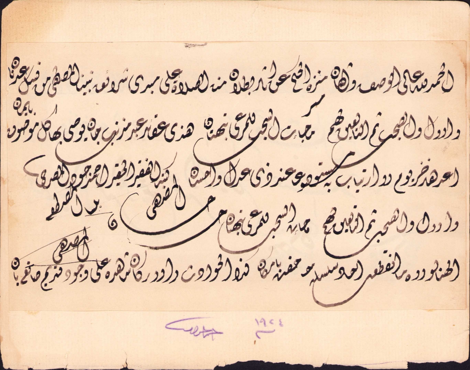 Divani Hat Yazı, Muhammed Cevdet Ketebeli, 2 sayfa, 1324 hicri, 1906 tarihli, 22,5x18 cm.