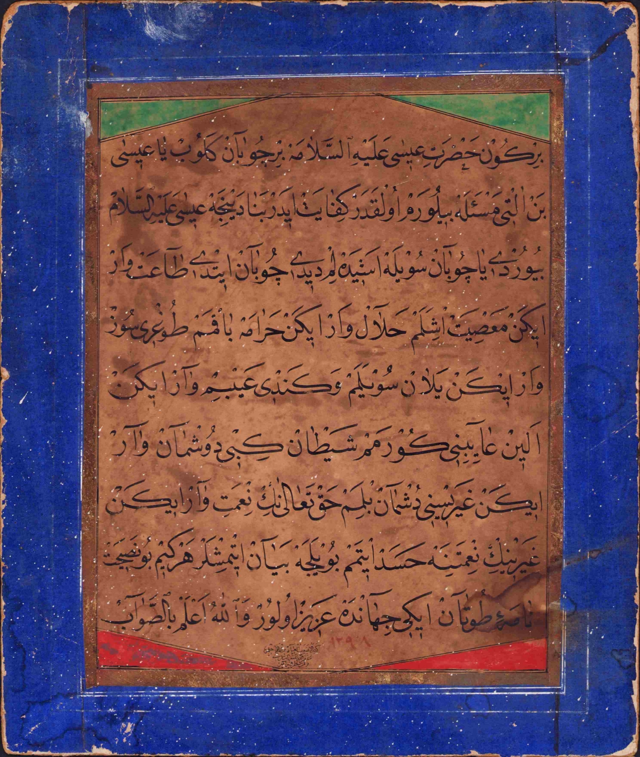 Sülüs yazı, ketebe Mustafa Hilmi, 1298 tarihli, paspartulu, altın yaldızlı, 25x29,5 cm.