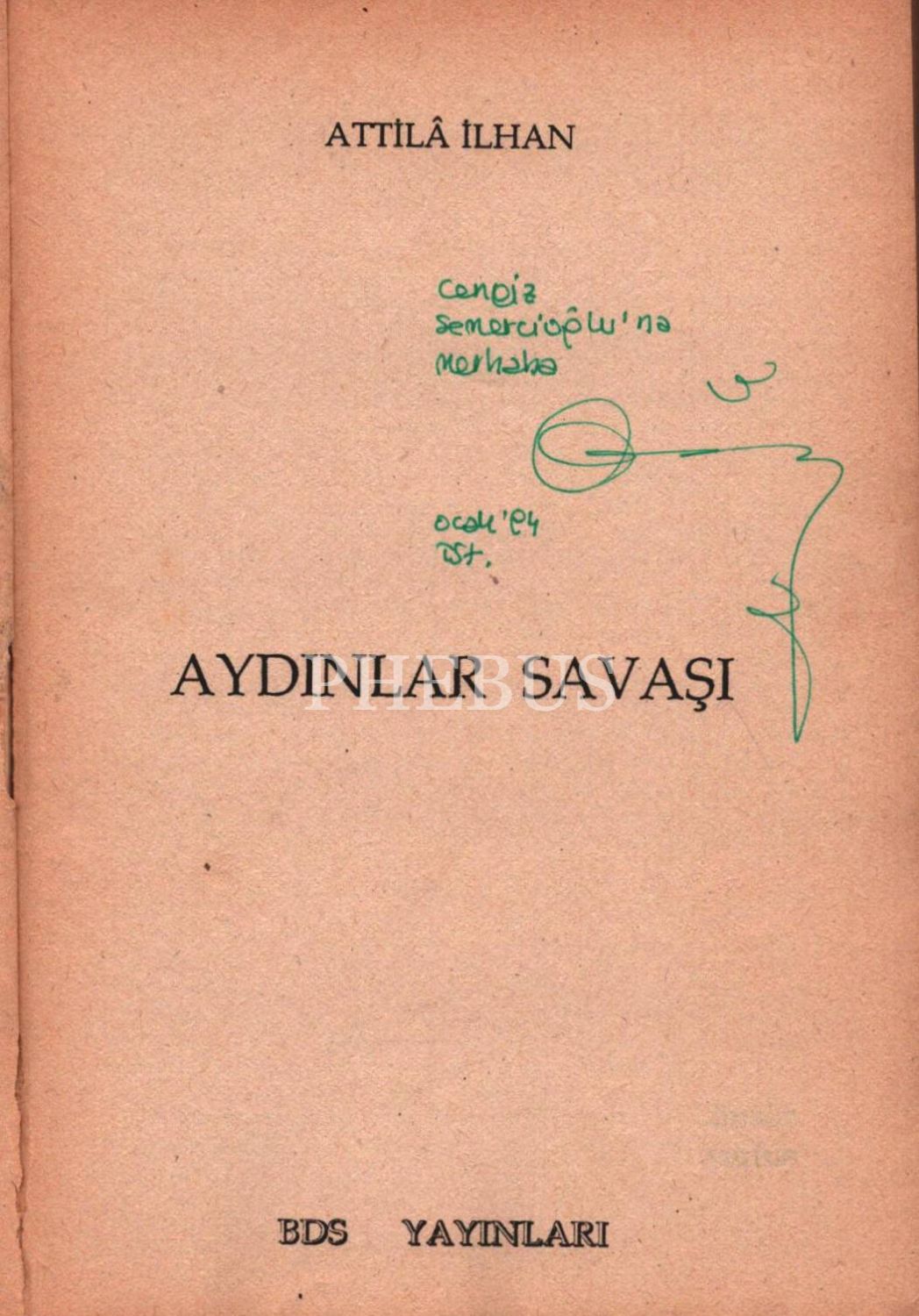 Attilâ İlhan´dan Cengiz Semercioğlu´na ithaflı ve imzalı AYDINLAR SAVAŞI, BDS Yayınları, İstanbul - Eylül 1991, 139 sayfa, 14x20 cm