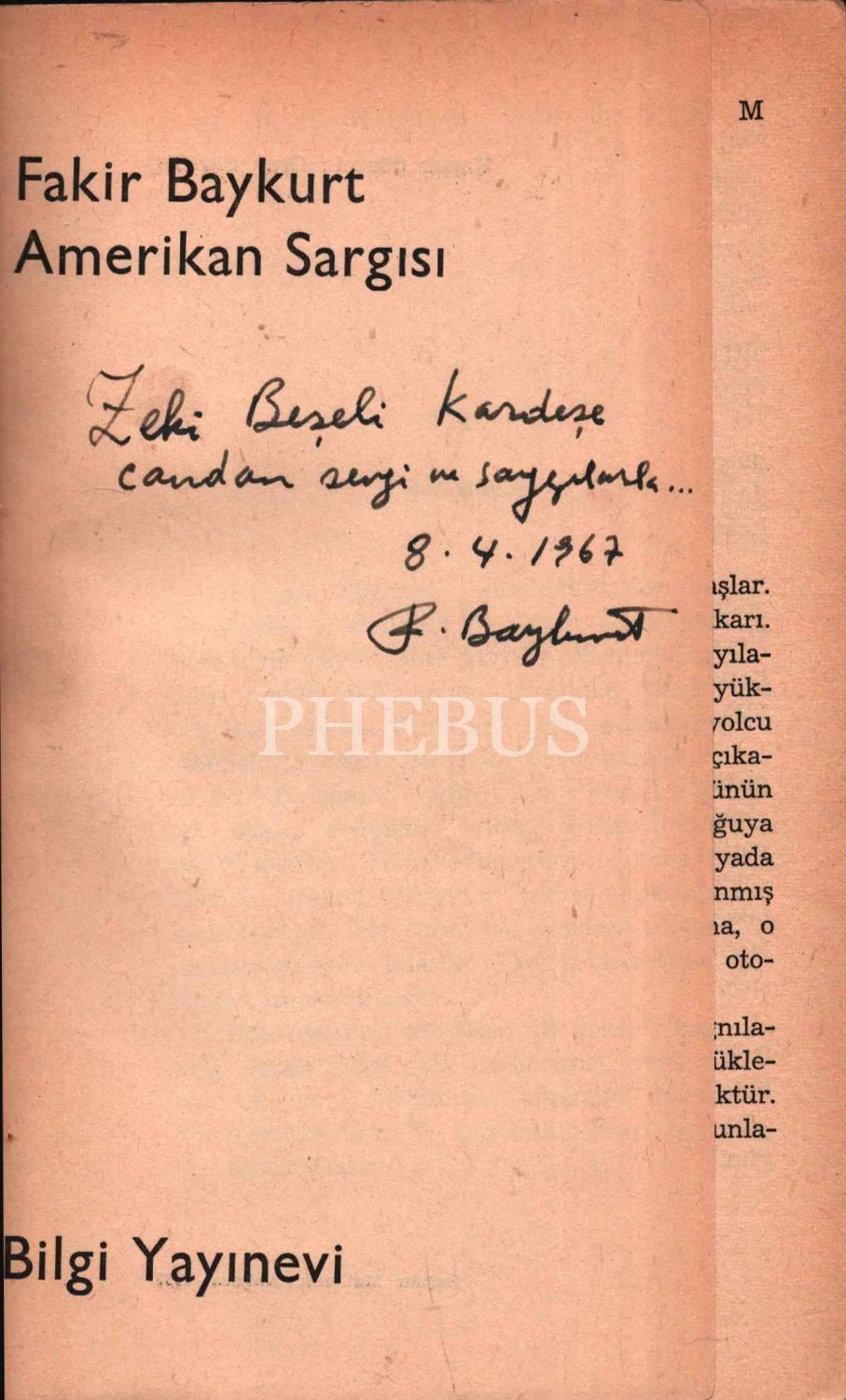 İthaf, "Zeki Beşeli Kardeşe candan sevgi ve saygılarla... 8.4.1967 F. Baykurt" şeklindedir.