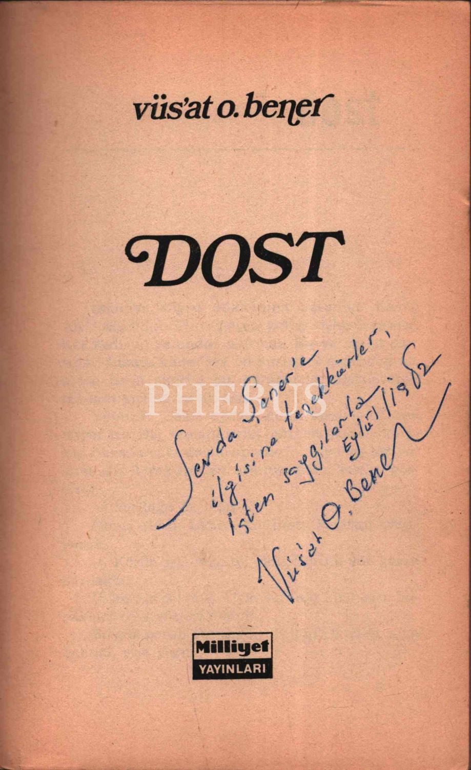 Vüs´at O. Bener´den ithaflı ve imzalı DOST, Milliyet Yayınları, Şubat 1977, 318 sayfa, 12x20 cm