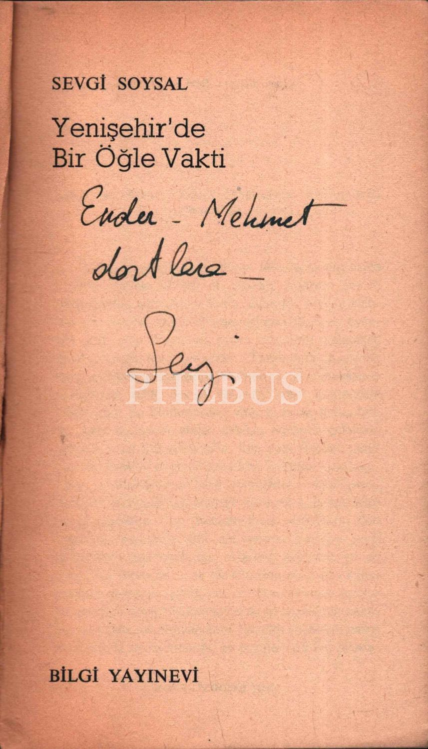 Sevgi Soysal´dan ithaflı ve imzalı YENİ ŞEHİR´DE BİR ÖĞLE VAKTİ, Bilgi Yayınevi, Haziran 1973, 297 sayfa, 11x19 cm