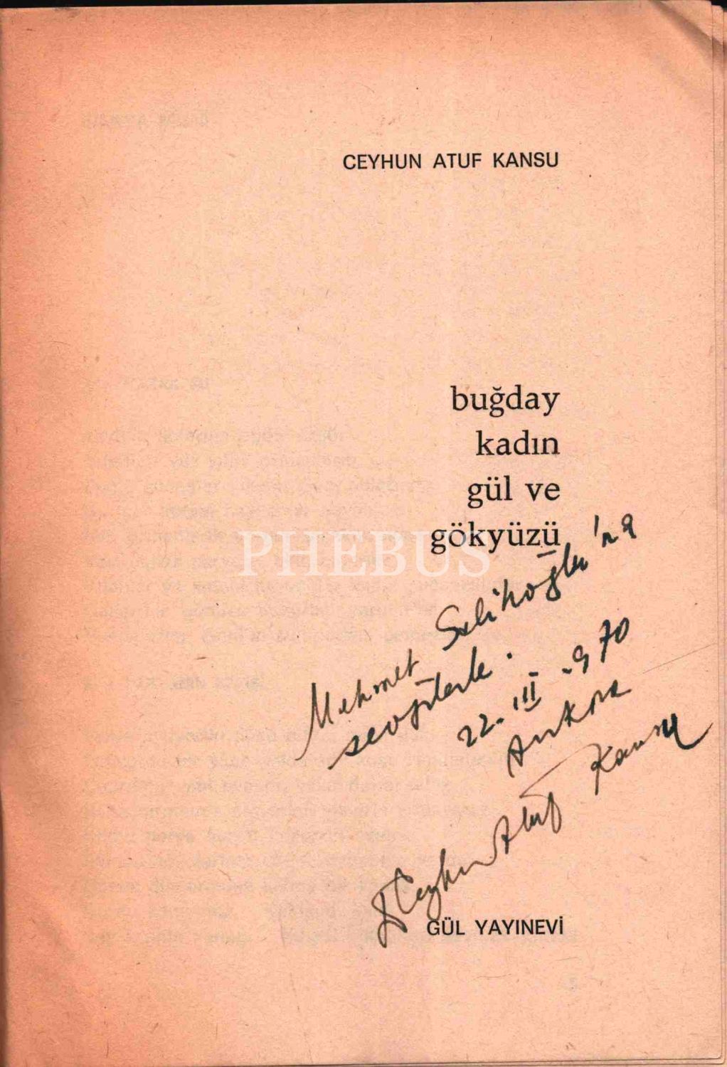 Ceyhun Atuf Kansu´dan ithaflı ve imzalı BUĞDAY KADIN GÜL VE GÖKYÜZÜ, Gül Yayınevi, İstanbul - 1970, 76 sayfa, 14x20 cm