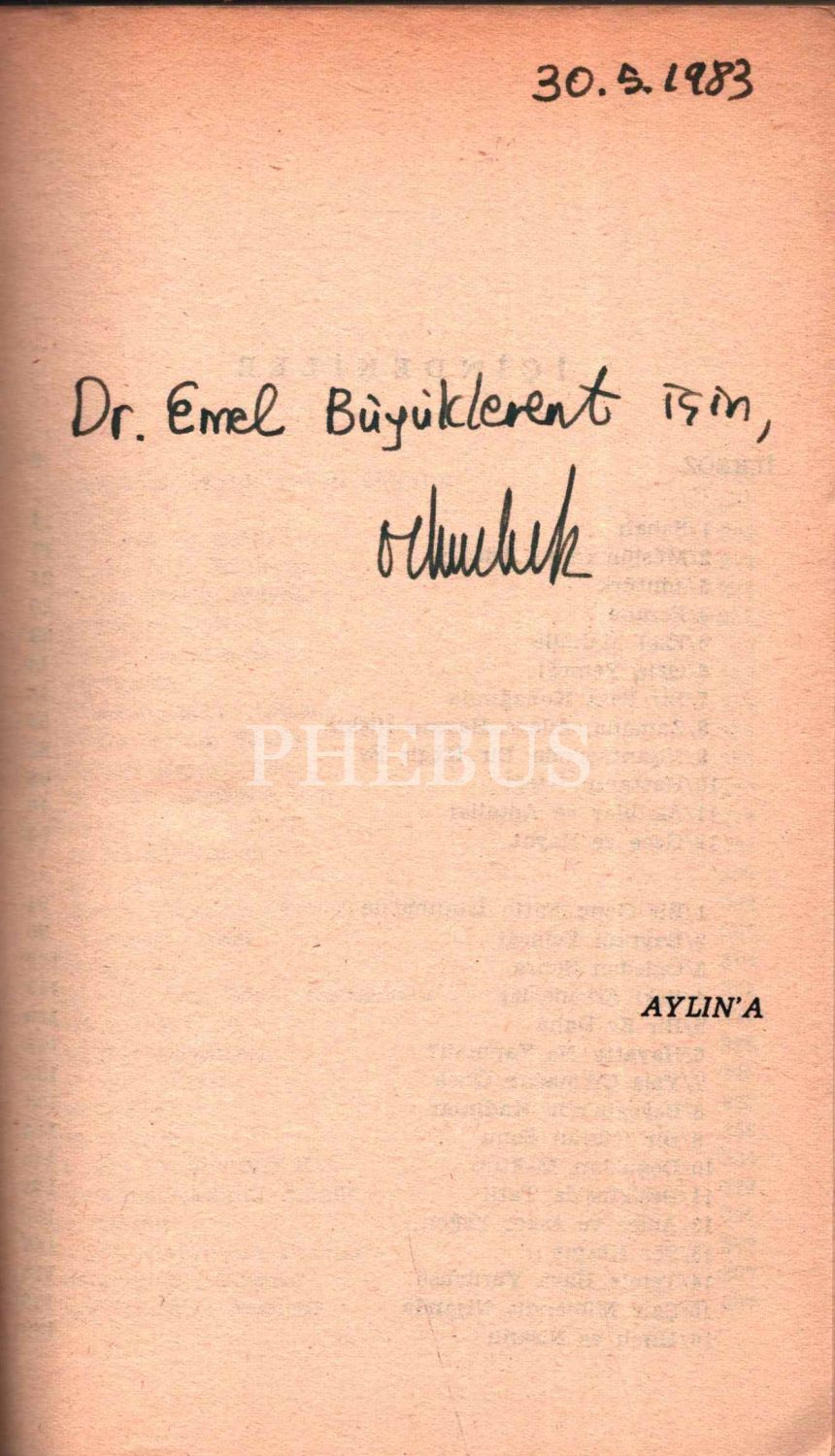 İthaf, "30.5.1983 Dr. Emel Büyüklevent için, Orhan Pamuk" şeklindedir.