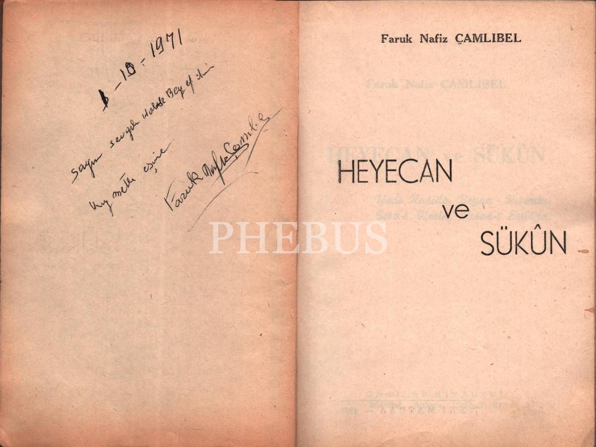 Faruk Nafiz Çamlıbel´den ithaflı ve imzalı HEYECAN VE SÜKÛN, İnkılâp Kitabevi, İstanbul - 1959, 192 sayfa, 14x20 cm
