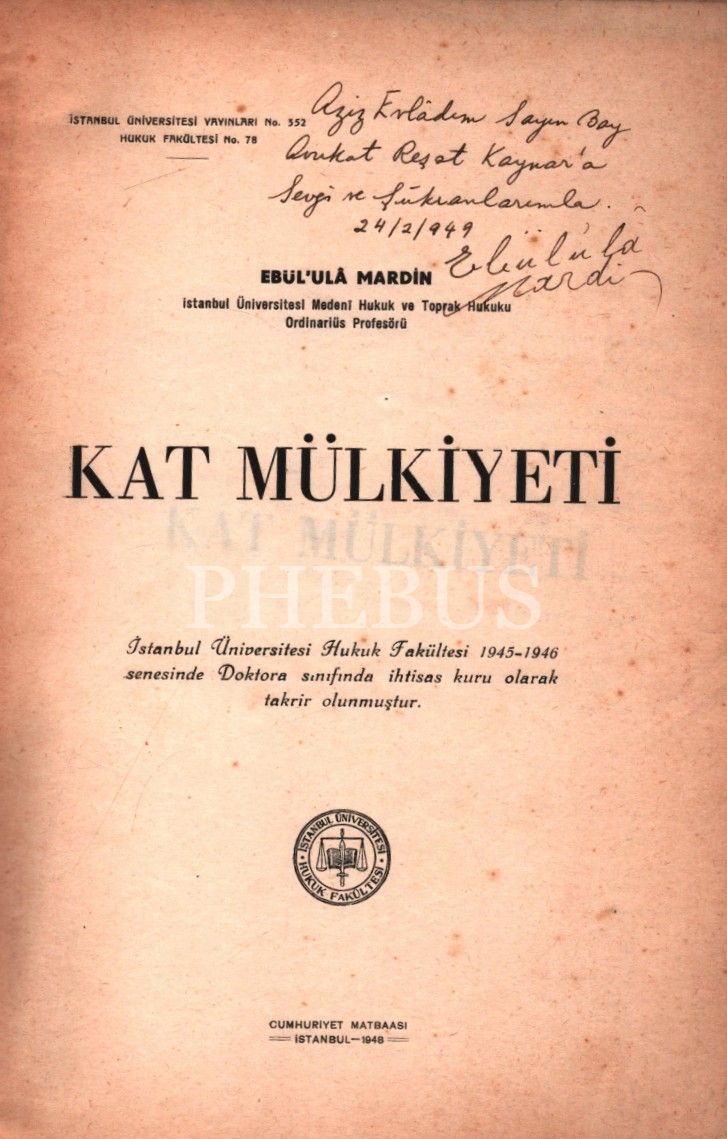 İthaf, "İsmail Rodoplu Kardeşe Kardeşce. 21.5.1982 M. Ofluoğlu" şeklindedir.