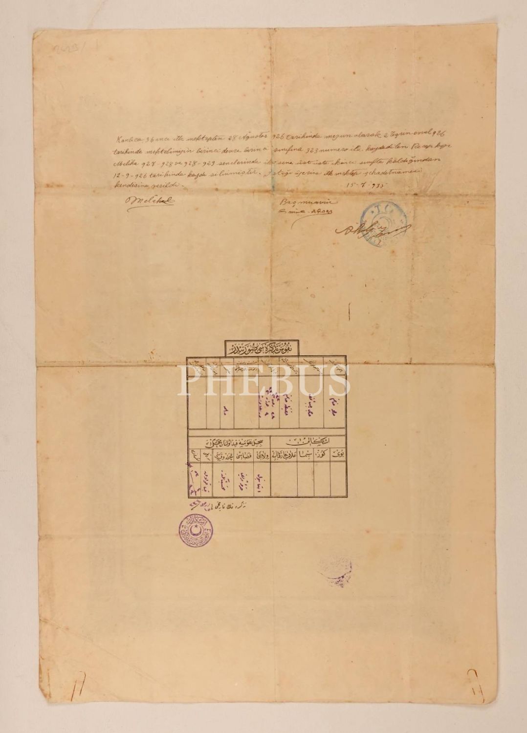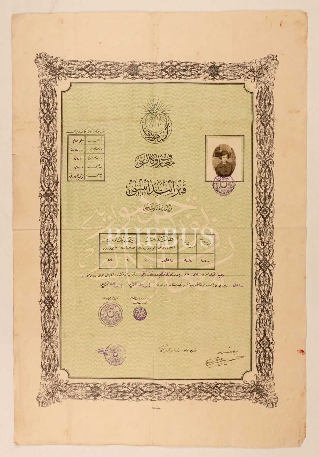 Meliha Hanım´a ait "a´lâ" dereceli, fotoğraflı kız ilkokulu diploması, Üsküdar/Dersaadet 1926, 33x50 cm