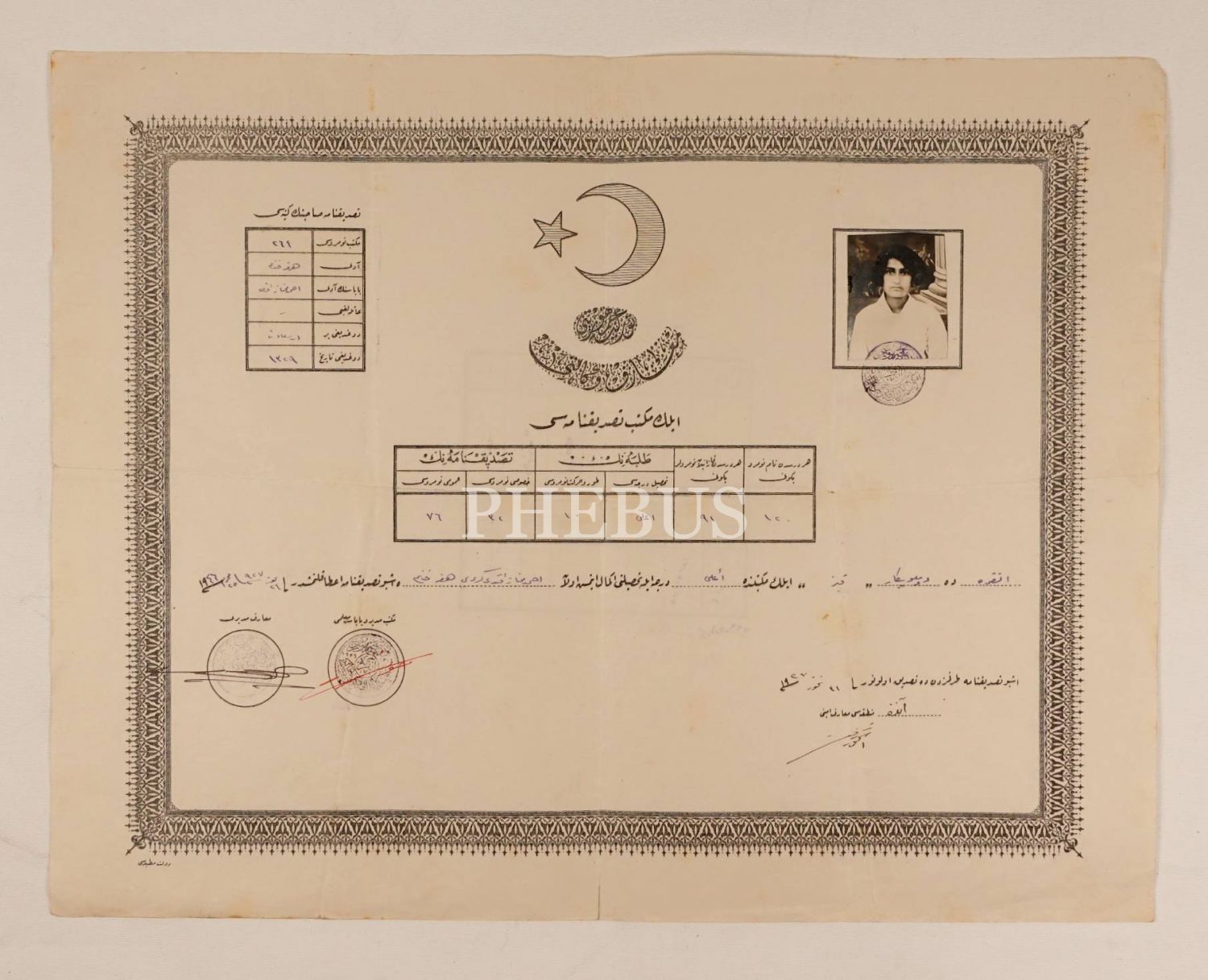 "A´lâ" dereceli, fotoğraflı ilkokul tasdiknamesi [diploma], Ankara 1927, 35x45 cm