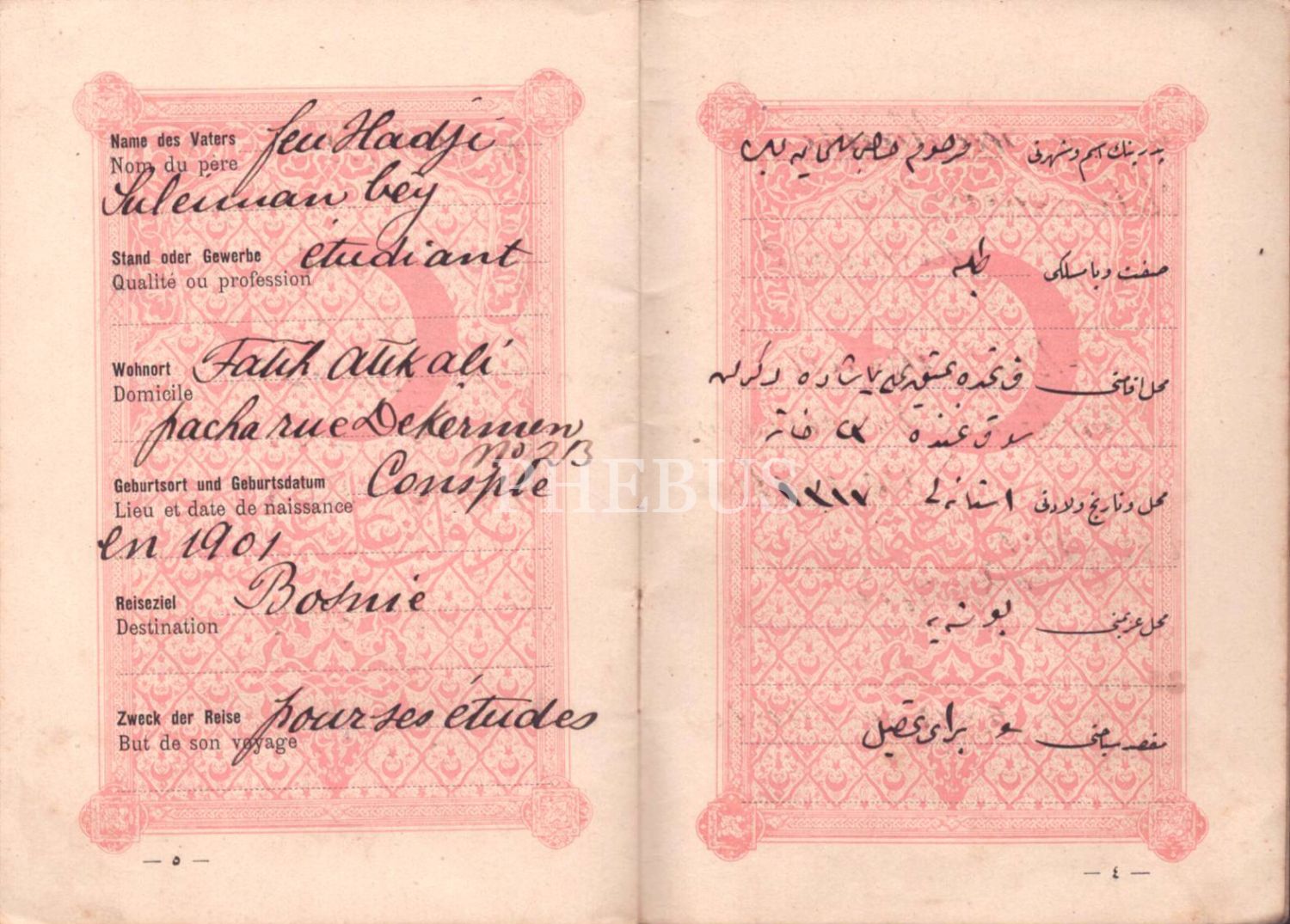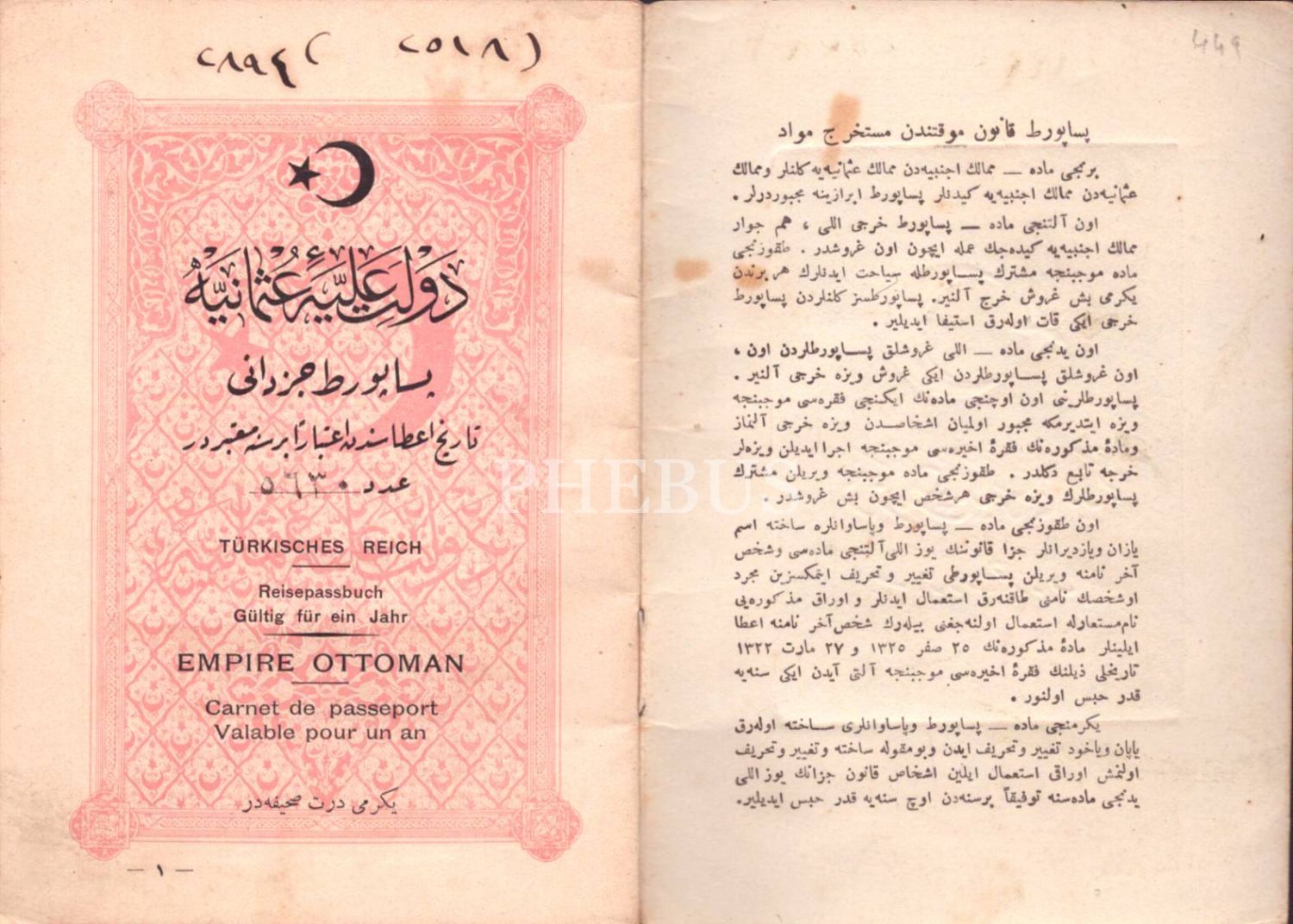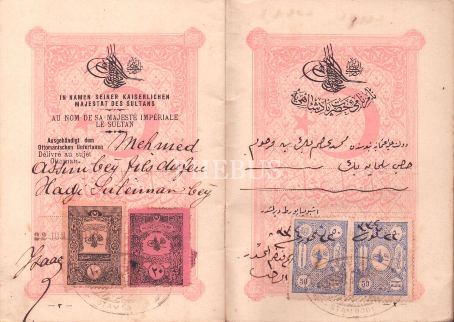 Mehmed Asım Bey´e ait Osmanlı İmparatorluğu pasaportu, 1918, 10x14 cm