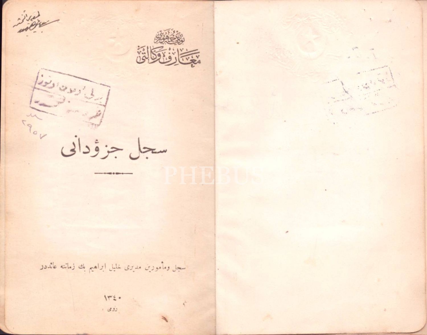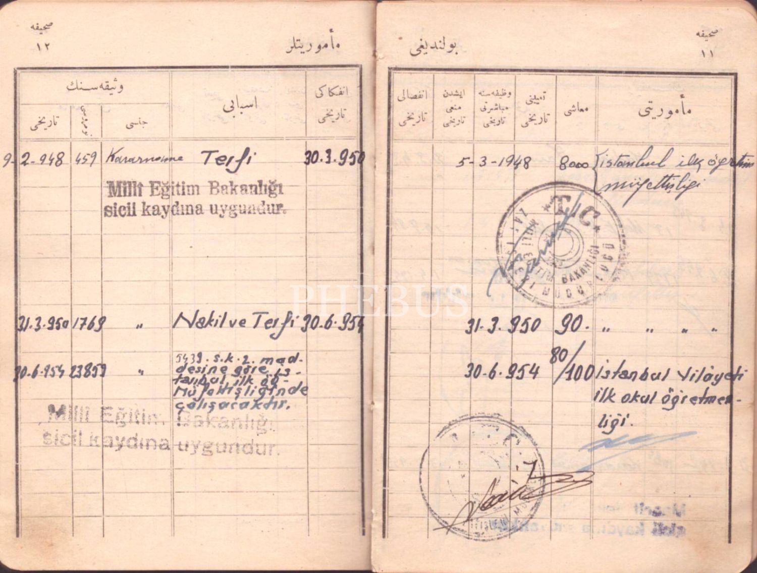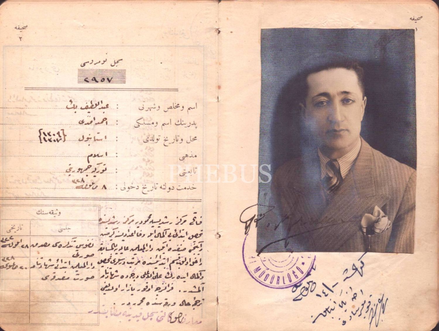 Abdüllatif Bey´e ait fotoğraflı Maarif Vekaleti memur sicil cüzdanı, 1926-1954, 11x16 cm