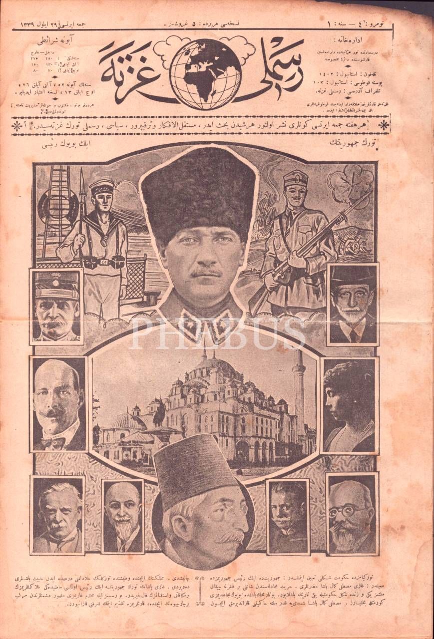 Türkiye Cumhuriyeti´nin İlk Büyük Reisi Atatürk görselli RESİMLİ GAZETE (No: 4), 29 Eylül 1339, 27x40 cm