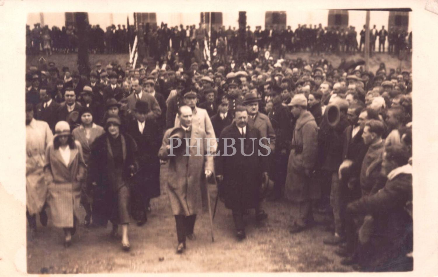 Şapkasıyla halkı selamlayan Mustafa Kemal Atatürk ve beraberindekiler