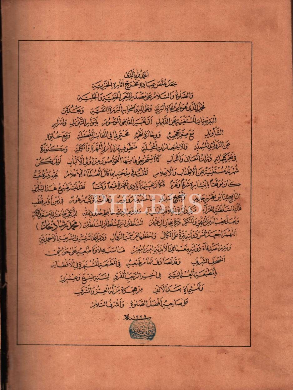 Deri cildinde Arapça TEFSÎRU´L-KÂDI BEYZÂVÎ (Envârü´t-Tenzîl ve Esrârü´t-Te´vîl), Matbaa-i Osmaniye, 1329, 815 s., 25x32 cm