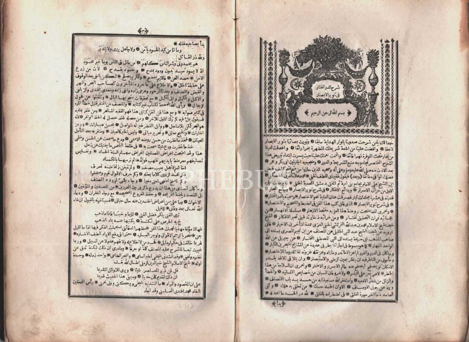Tuğralı deri cildinde Arapça ŞERHU´D-DÜRRÜ´L-MUHTÂR FÎ TENVÎRİ´L-EBSÂR (2 cilt bir arada), 1277, 316+302 s., 21x30 cm