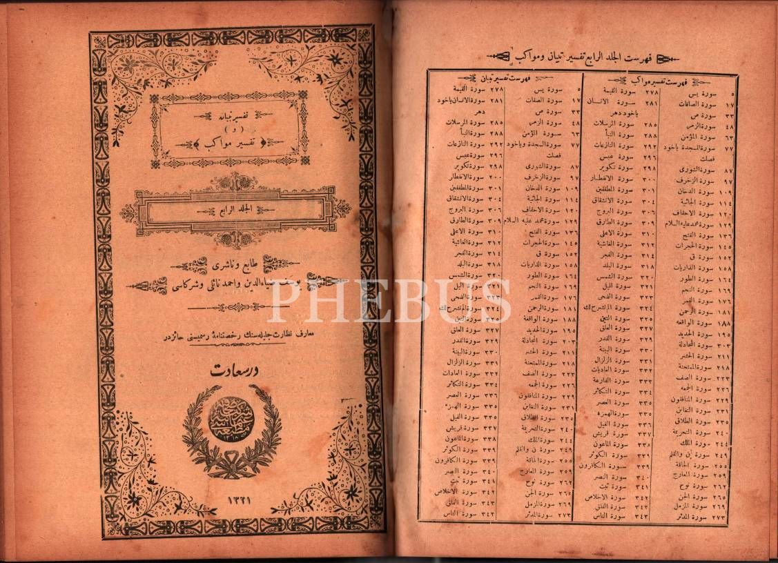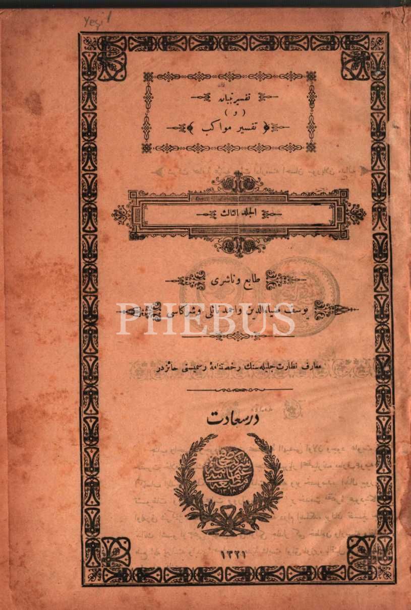 TEFSÎRU TİBYÂN VE TEFSÎRU MEVÂKİB (3. ve 4. cilt bir arada), Şirket-i Sahafiye-i Osmaniye Matbaası, İstanbul 1321, 398+344 s., 21x28 cm