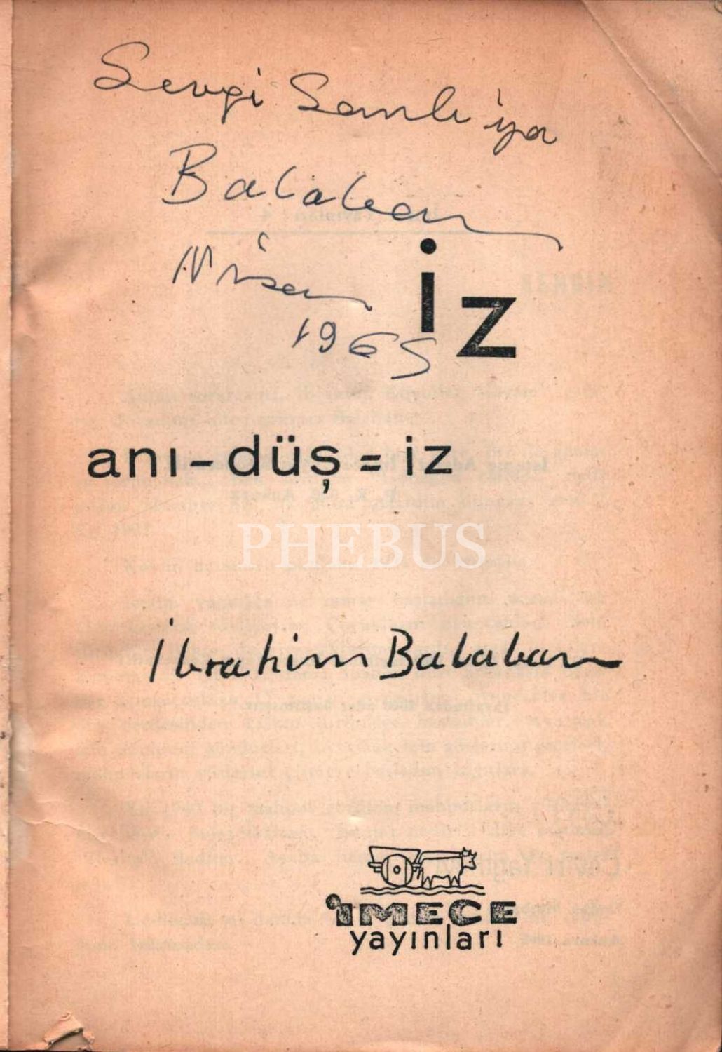 İbrahim Balaban´dan ithaflı ve imzalı İZ, İmece Yayınları, Ankara 1965, 99 s., 14x20 cm
