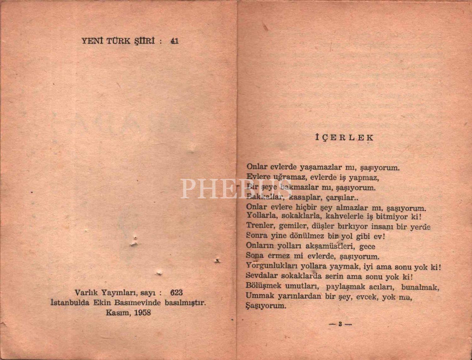 Behçet Necatigil´den ithaflı ve imzalı ARADA, Varlık Yayınevi, İstanbul 1958, 63 s., 12x17 cm