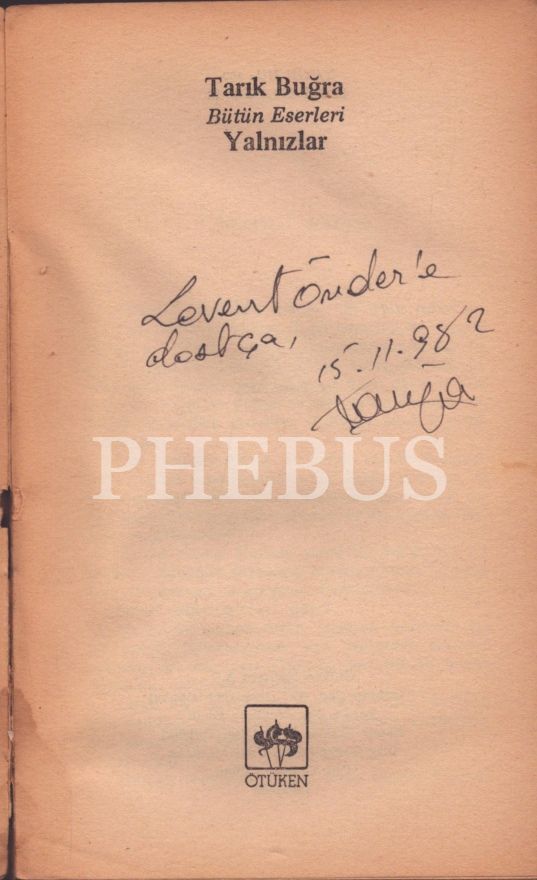 Tarık Buğra´da ithaflı ve imzalı YALNIZLAR, Ötüken Yayınları, İstanbul 1981, 258 s., 12x19 cm