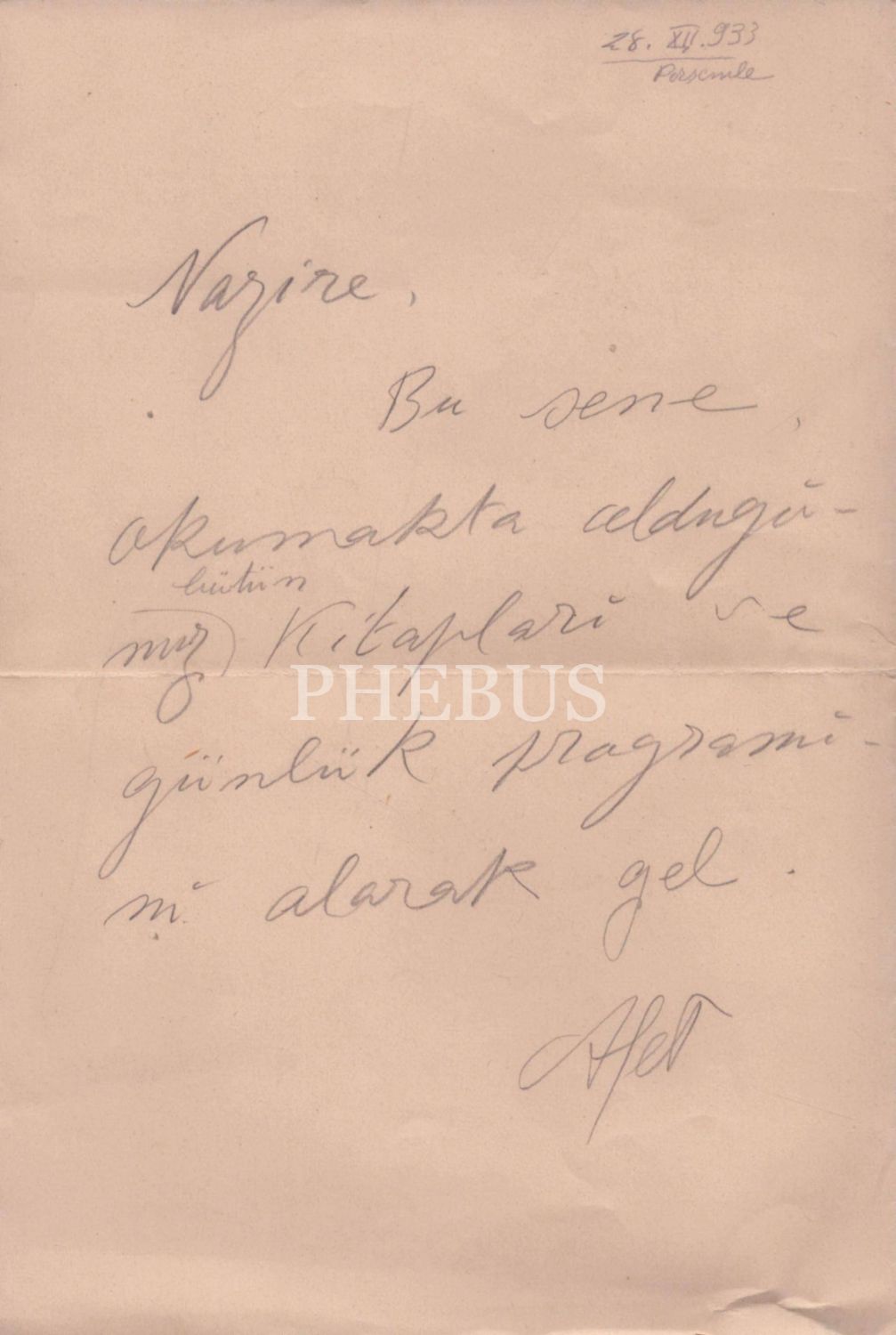 Afet İnan´dan ıslak imzalı çağrı mektubu, 1933, 13x20 cm