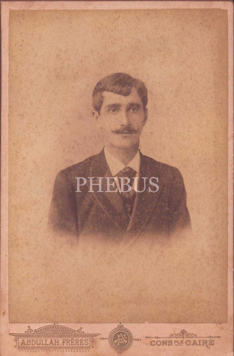 Bıyıkları ve saç modeli ile dikkat çeken beyefendinin hatıra kabin fotoğrafı, Abdullah Biraderler Fotoğrafhanesi- Constantinople, 11x16 cm