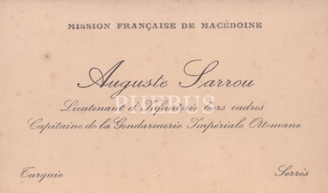 Osmanlı İmparatorluğu Jandarma Piyade Teğmeni Auguste Sarrou´ya ait kartvizit