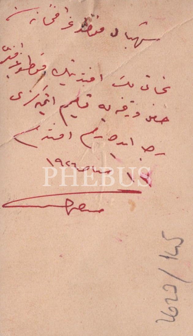 Münif Kemal´e ait kartvizit, arkasında Şehbal Fotoğrafhanesi´ne hitaben 1926 tarihli not mevcut