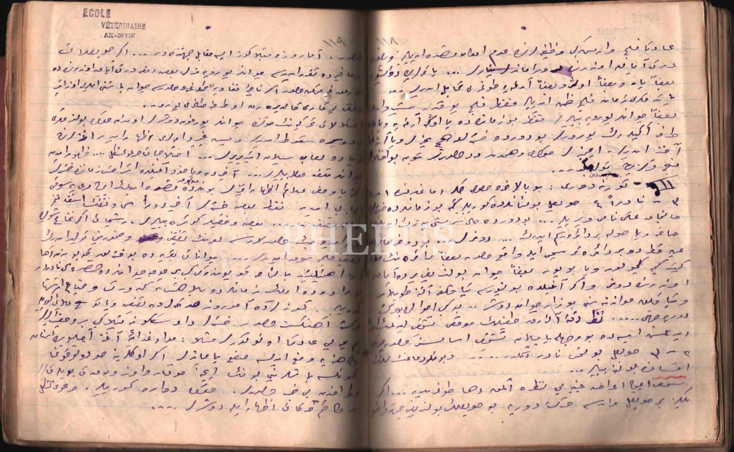 Defterde Osmanlıca "Çerkes Sıhhiye Baytarı" mührünün yanı sıra "Mazhar Üresin Doktor Veteriner" ve "Ecole Veterinaire Ak-Bıyık" kaşeleri vardır. Defterde başka boyutlarda birden fazla defter parçası cilde eklidir.