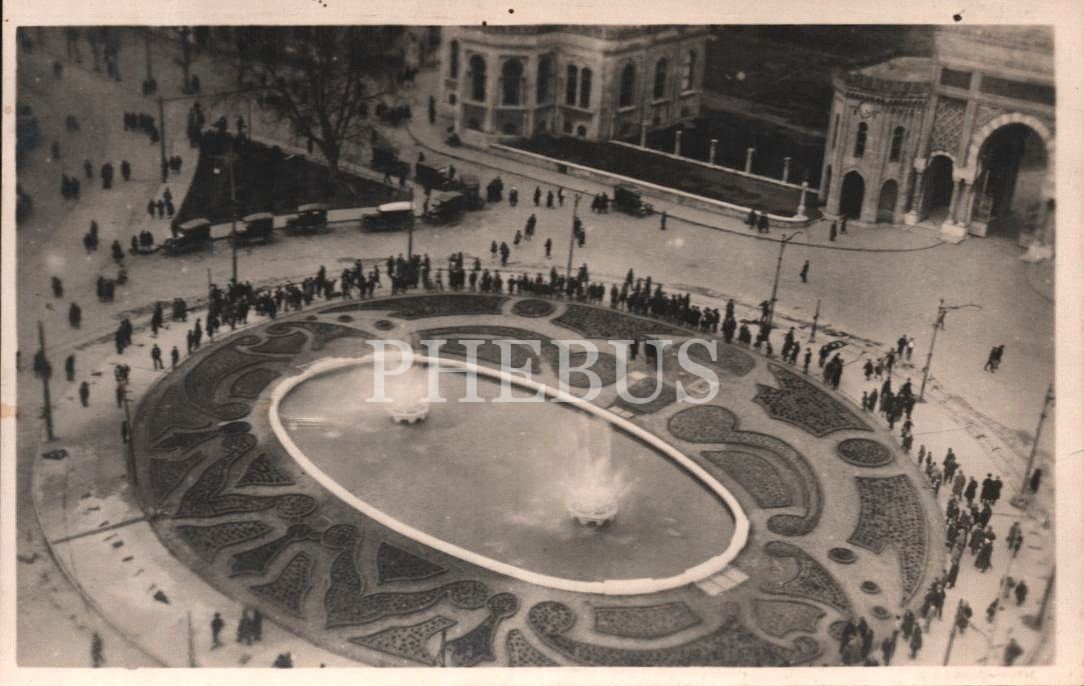 İstanbul Üniversitesi Kapısı [Bâb-ı Seraskerî] ve büyük havuzun kuş bakışı görünümü, 9x14 cm