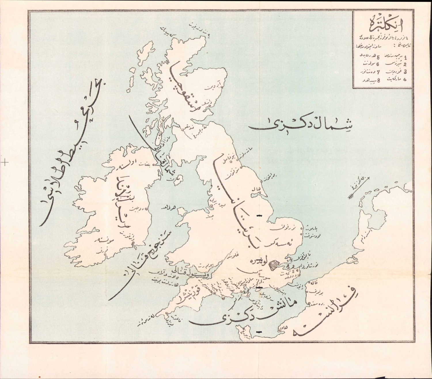 Osmanlıca İngiltere haritası, 33x30 cm.