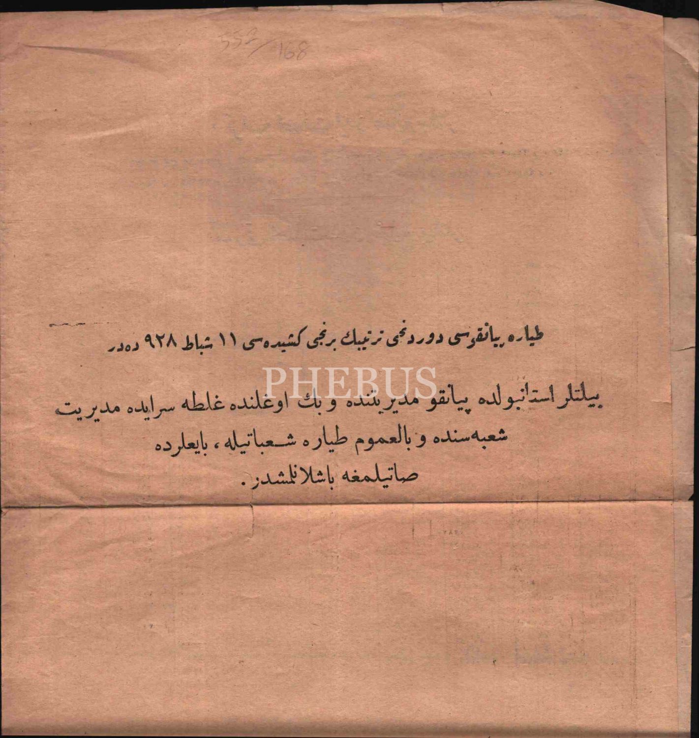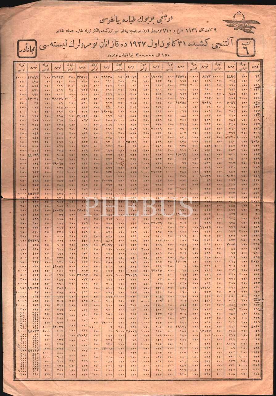 Üçüncü Büyük Tayyare Piyangosu, 31 Kanunievvel 1927´de Kazanan Numaraların Listesi, 28x41 cm
