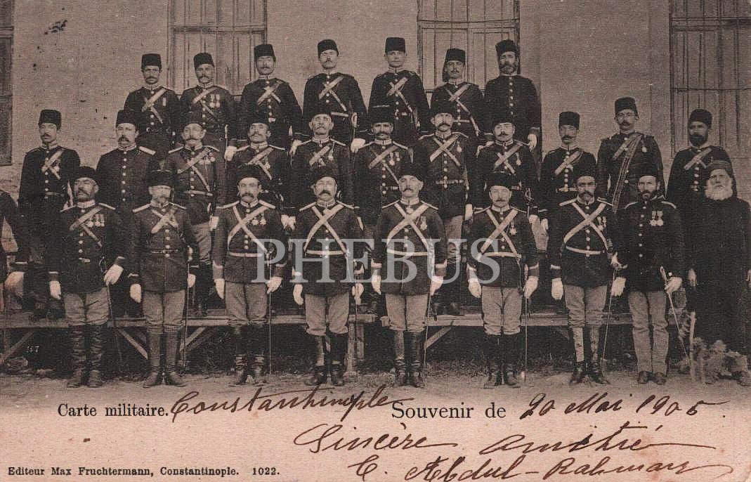 Osmanlı subayları, ed. Max Fruchtermann, Constantinople, Galata Poste Françe 20 Mayıs 1920 damgalı Fransızca kartpostal