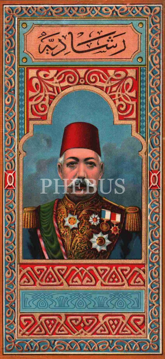 "Reşadiye" yazılı ve Sultan Mehmed Reşad görselli fes etiketi, 11x24 cm