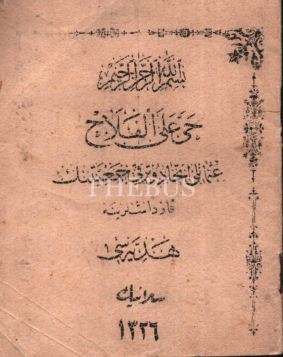 HAYYEALE´L-FELÂH, Osmanlı İttihat ve Terakki Cemiyeti, Rumeli Matbaası, Selanik 1326, 20 s., 12x15 cm