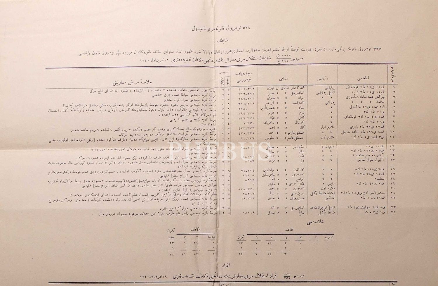 Zabıtan İstiklâl harbi malûllerine dördüncü mükâfatı nakdiye defteri, 19 Teşrinievvel 1340, 42x82 cm