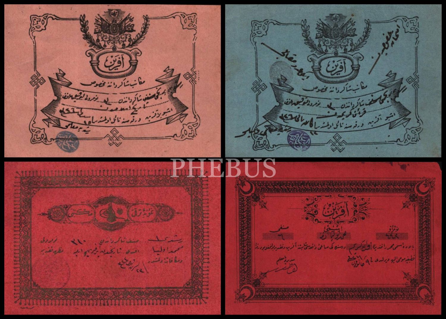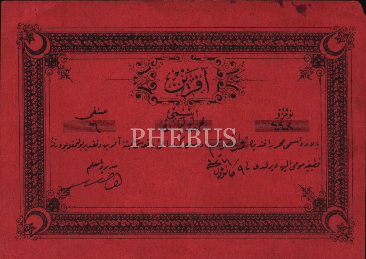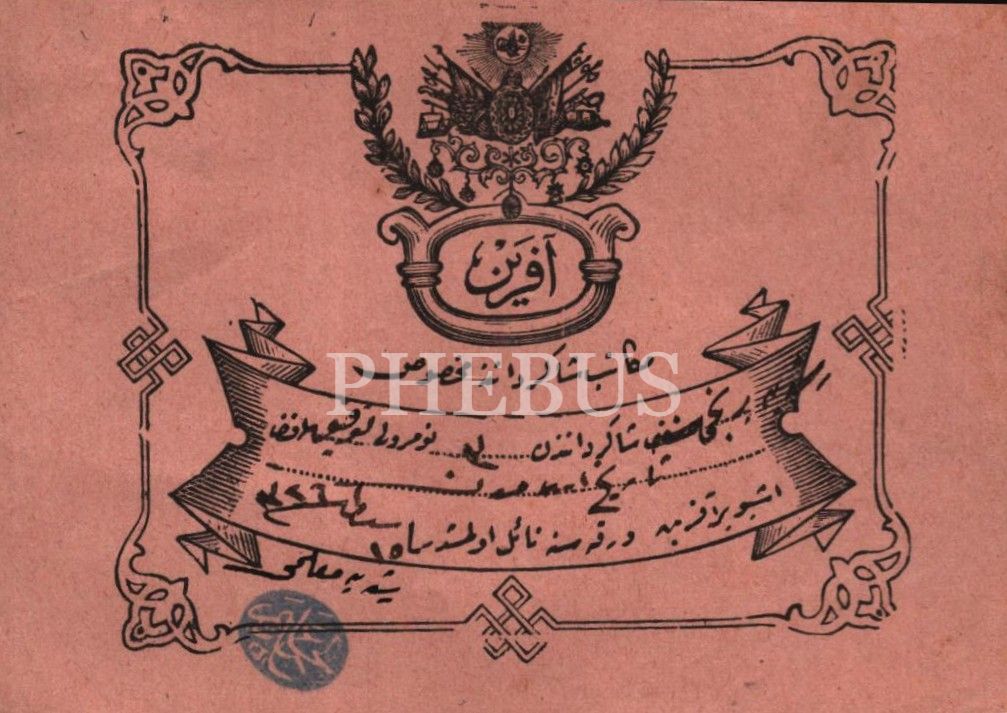 Nûmûne-i Terakki Mektebi, 2 adet Samsun Rüştiye Mektebine ait aferin kâğıtları, 9x13 cm