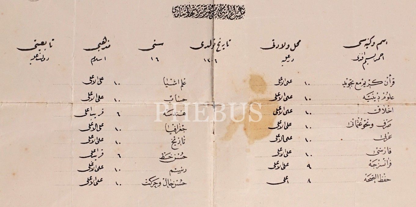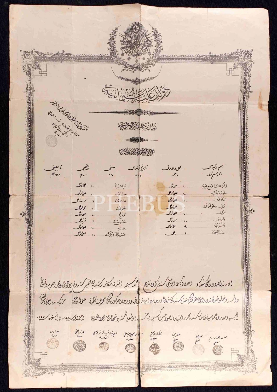Devlet-i Aliyye-i Osmaniyye Nezaret-i Celile-i Maarif-i Umumiye Edirne Mektebi öğrencisine mahsus diploma, 1328, 35x50 cm
