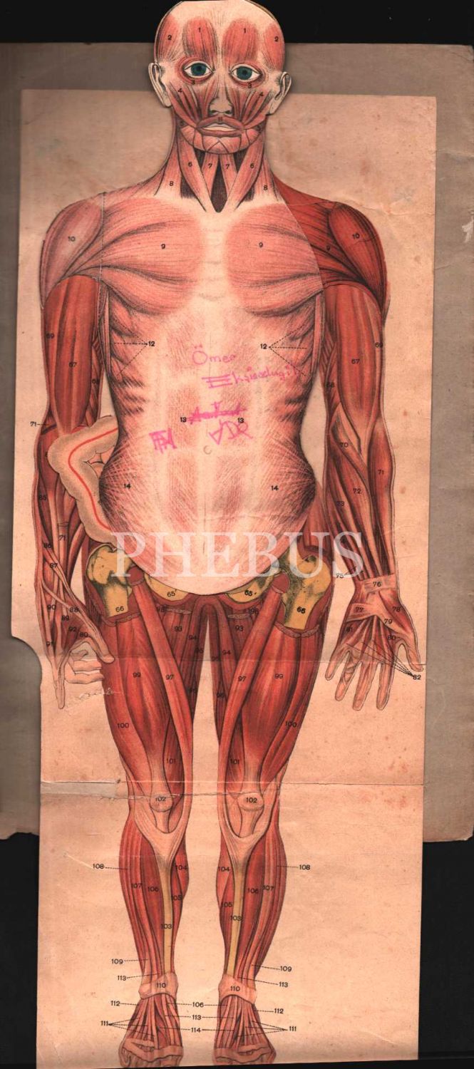 MÜKEMMEL VÜCÛD-I BEŞER HARÎTASI (ve A´zâ-yı Dâhiliyye ve Hâriciyyeleri ve Onların Vazîfeleri), Ali Firaz, Sanayi Nefise Matbaası, İstanbul 1928, 21x31 cm