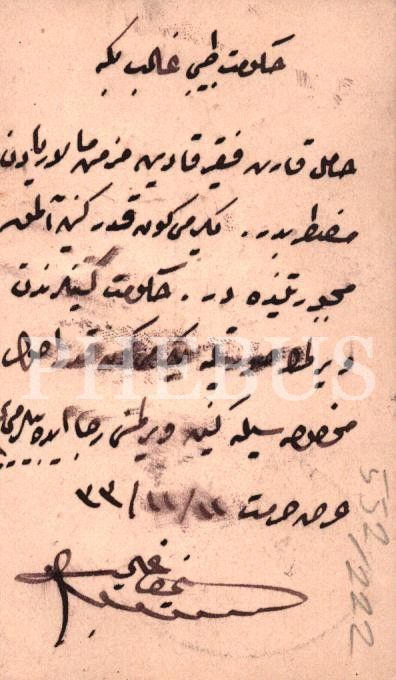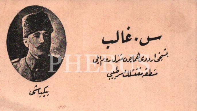 Beşinci Orduyu Hümayun Menzil Rumeli Mıntıka Müfettişlik Sertabibi Binbaşı Sn. Galib´e ait kartvizit, 11.11.1922, arkası yazılı ve imzalı