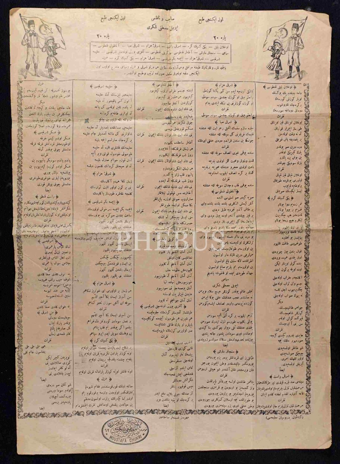 Eyüplü Mustafa Şükrü damgalı şarkılar, Ermeni Keteon Bedrosyan Matbaası, 36x50 cm