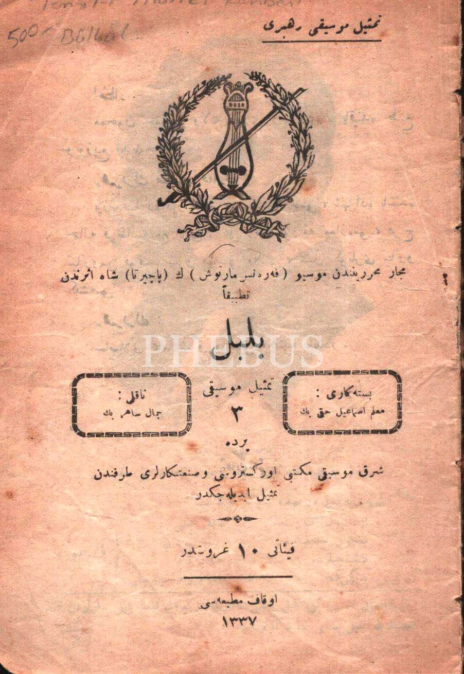Temsil-i Musiki Rehberi BÜLBÜL, Evkaf Matbaası, 1337, 31 s., 12x17 cm
