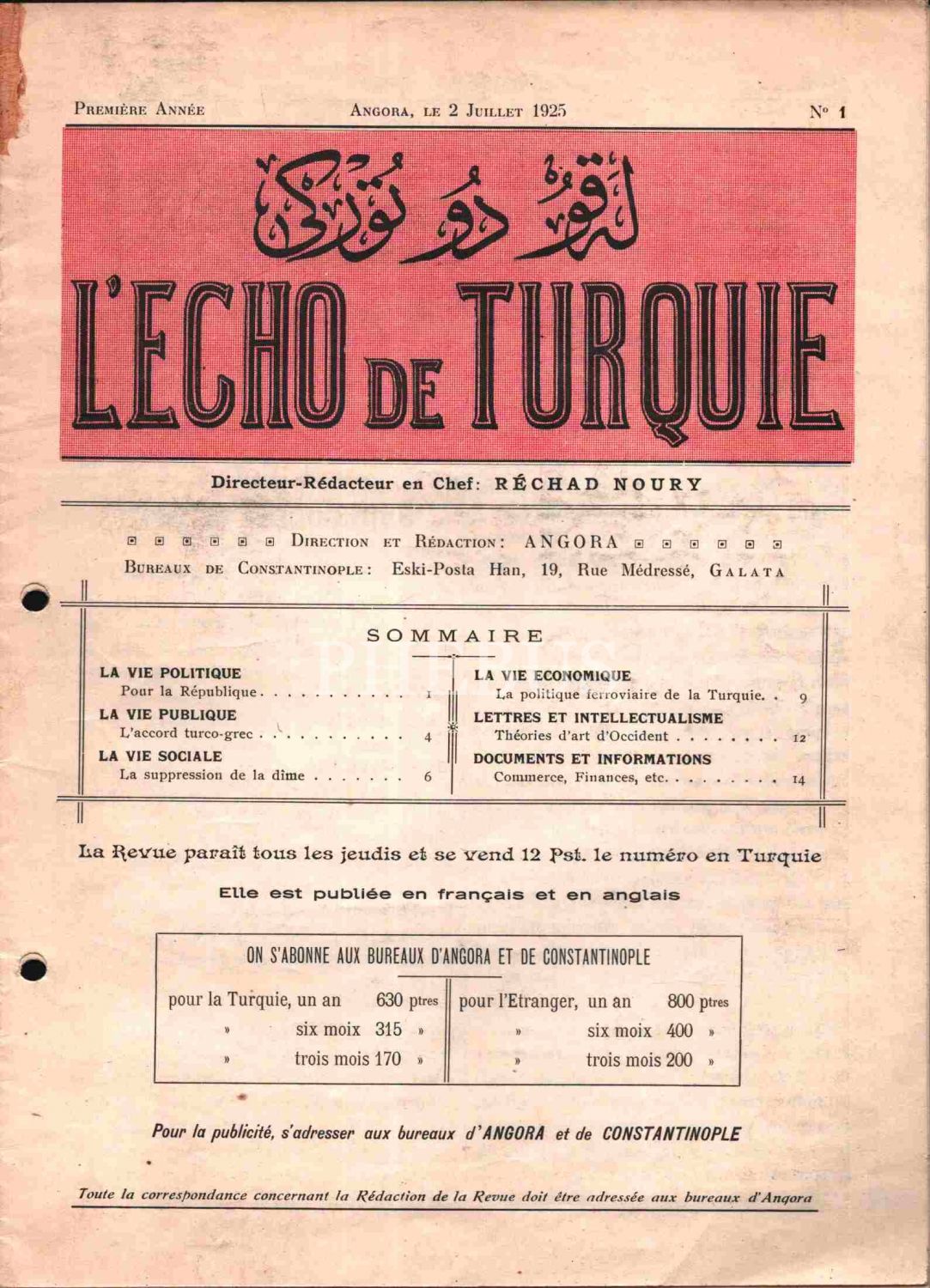 LEKO dö TÜRKİ / L´ECHO de TURQUIE, Rechad Noury, 2 Temmuz1925, Ankara, 16 s., 20x28 cm