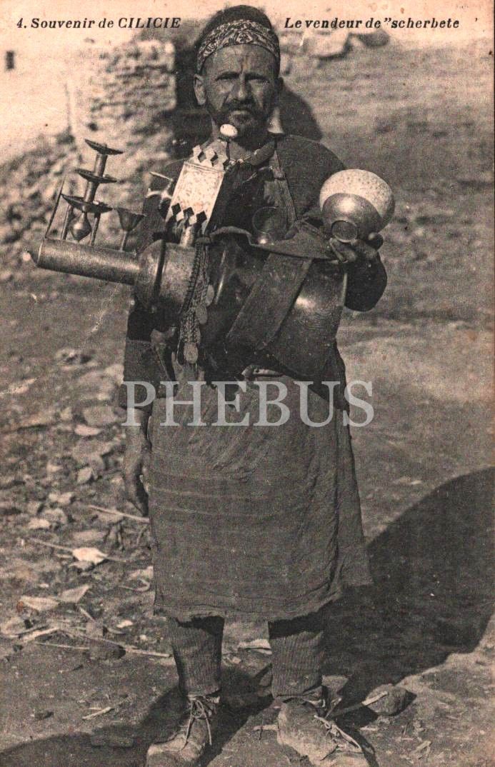 Osmanlı şerbet satıcısı, Cilicie, ed. K.Papadopoulos et Fils Mersin-Adana, arkası Fransızca yazılı
