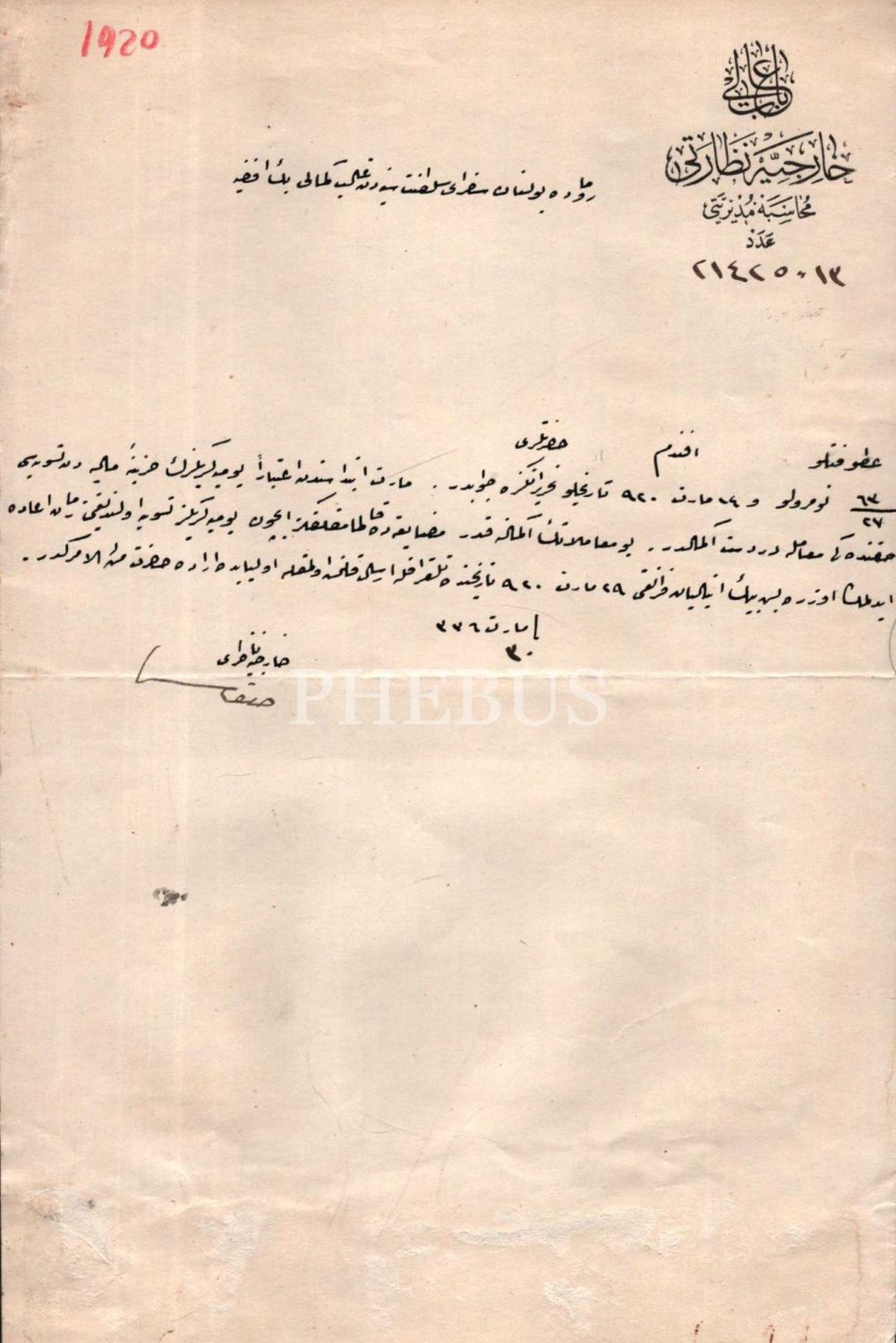 Hariciye Nazırı tarafından Roma´da bulunan Galip Kemalî Beyefendi´ye gönderilen mektup, Mart 1336, 17x26 cm