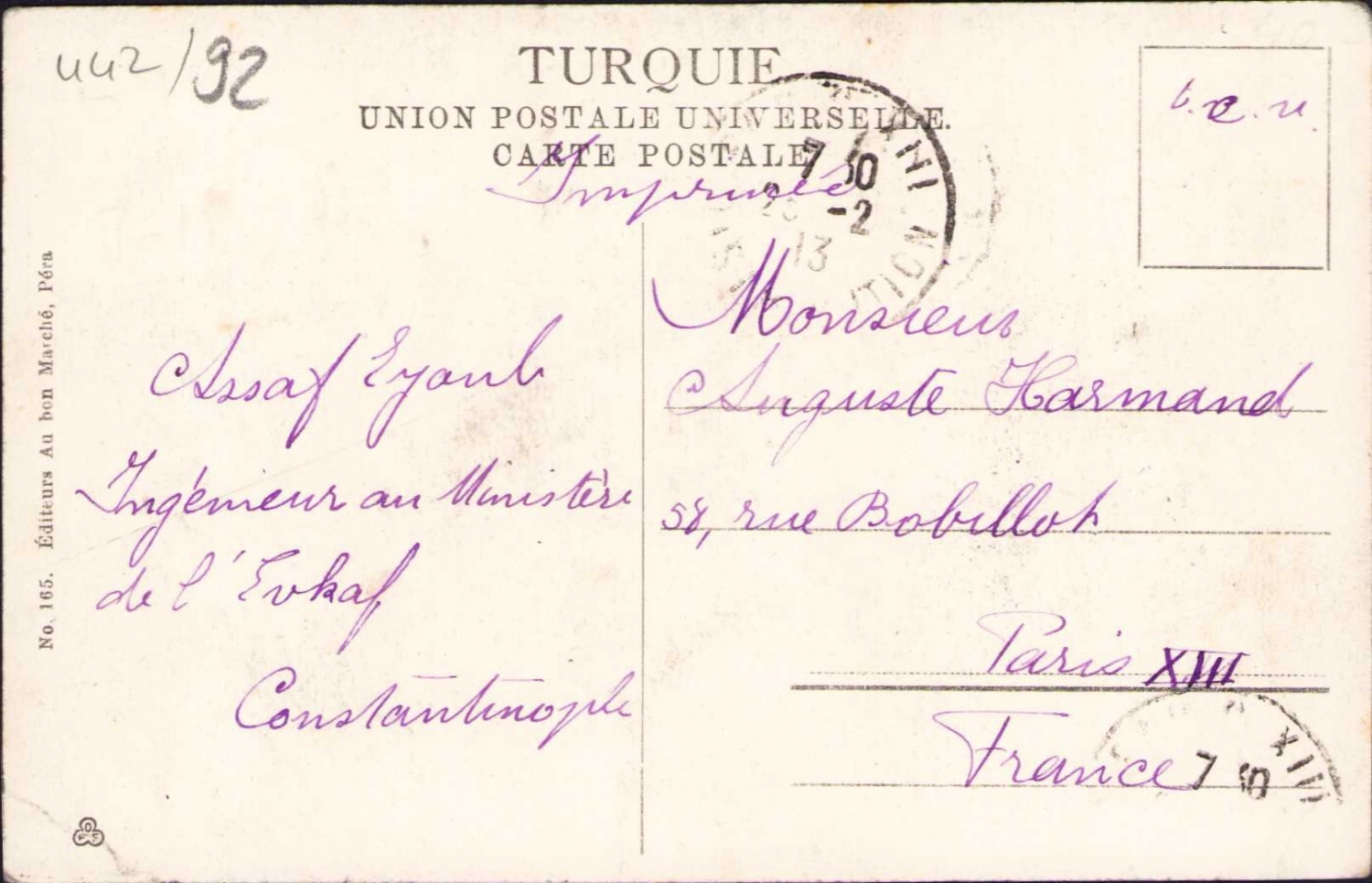 Constantinople - İstanbul Bebek manzarası, postadan geçmiş, Fransa adresli.