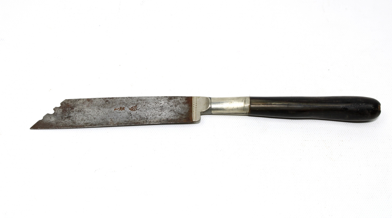 Osmanlı damgalı, Bursa yazılı, boynuz saplı hattat bıçağı, 1,5x18,5 cm