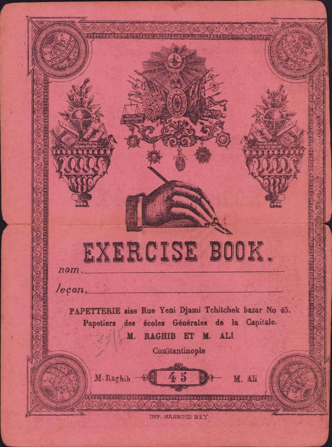 Osmanlı devlet armalı, Papetterie M. Raghib M. Ali reklamlı defter kapağı, 15x20 cm.