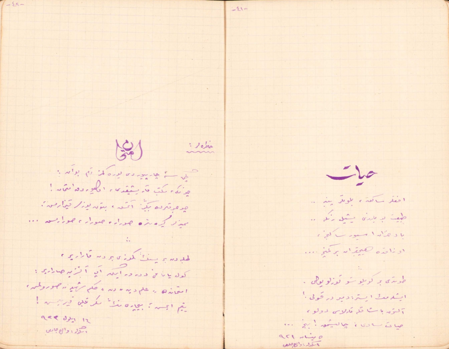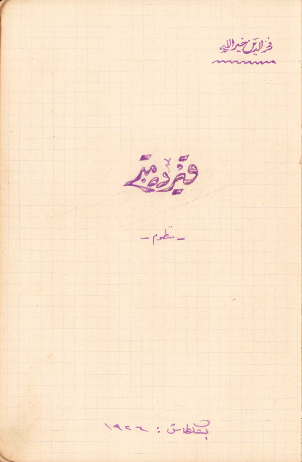 Osmanlıca 1926 tarihli Fahrettin Hayrullah''ın Manzum şiir defteri, ilk sayfa "Kır demetim" yazılı deri ciltli, 120 sayfa, 11x16 cm.