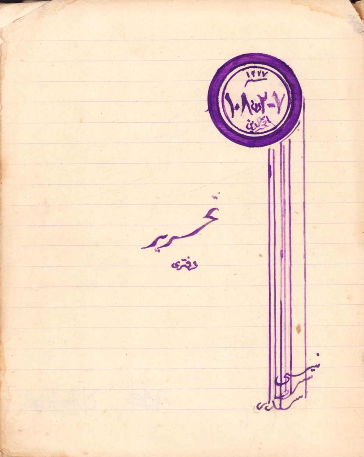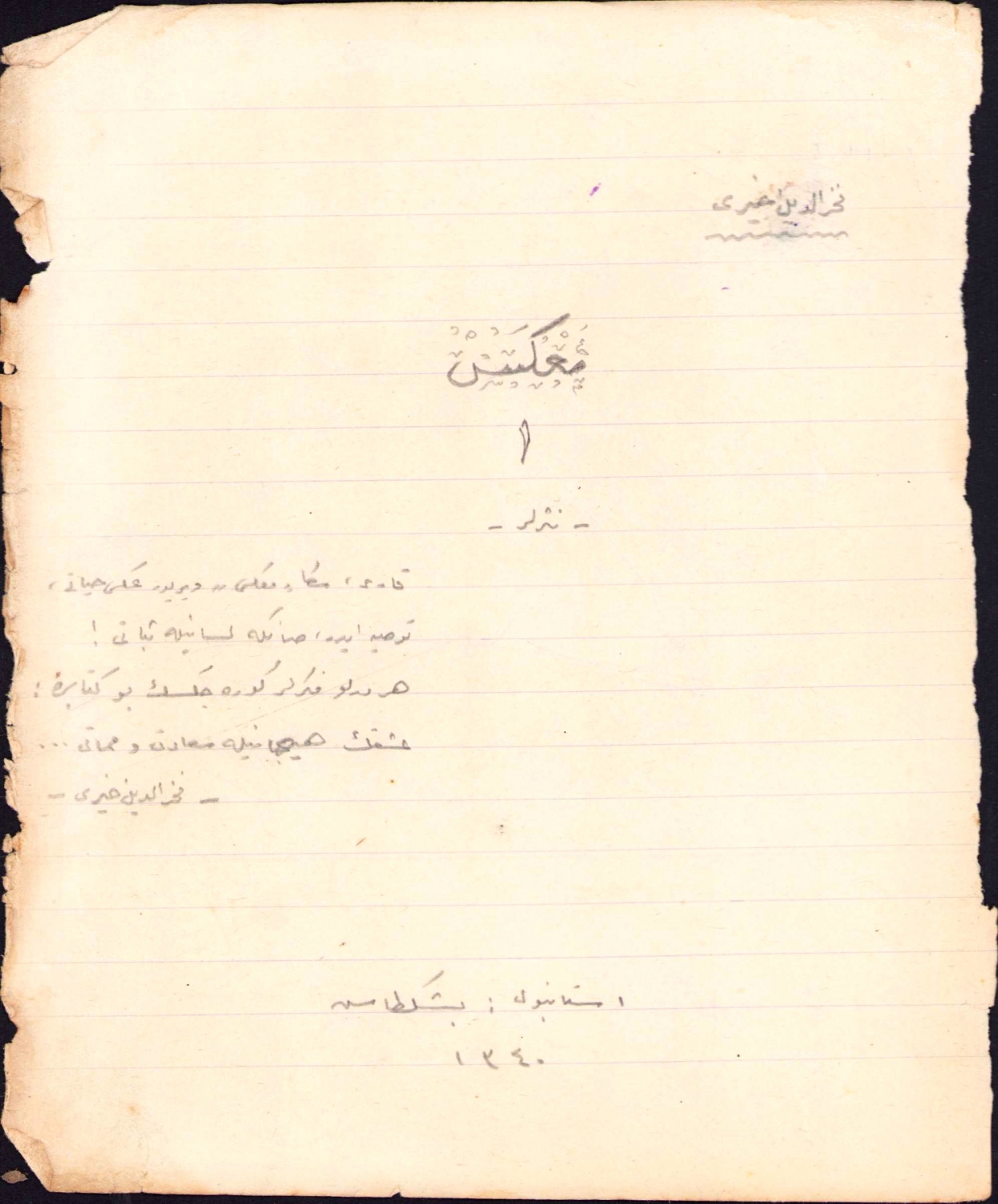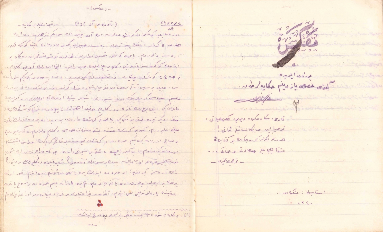 Osmanlıca hicri 1340 tarihli Üsküdar Mektebi Sultanisi sekizinci sınıf öğrencisi Fahrettin Hayrullah'ın tahrir defteri, 50 sayfa, 16x20 cm.
